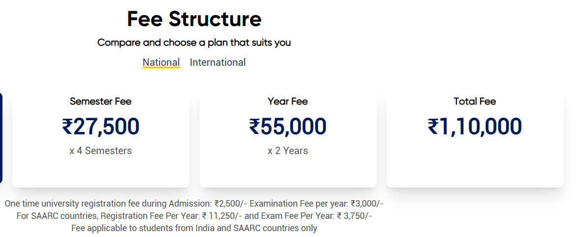 - This includes a total tuition fee of ₹ 1.1 Lakhs, Other Fees of ₹ 2,500.