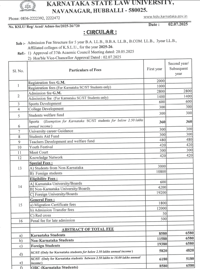 The curriculum includes interactive case studies and moot courts, supported by resources in both Kannada and English. The fee structure at Karnataka State Law University is affordable, with the first year costing Rs 10,400, and Rs 8,800 for subsequent years, totaling Rs 28,000 for three years, though another figure suggests Rs 40,000. The university is known for low fees compared to similar institutions, offering flexible payment options and potential scholarships for low-income students.