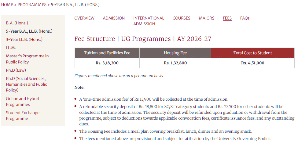 | NLSIU | ₹ 22.93 Lakhs |