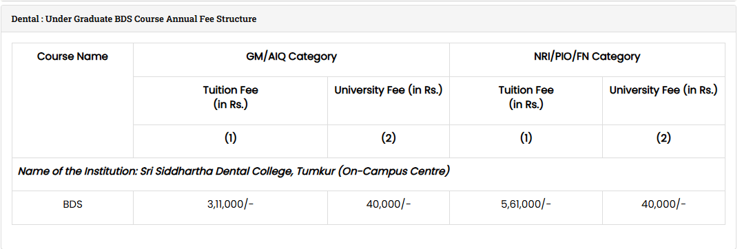 | Fee Type | Total Amount (INR) |