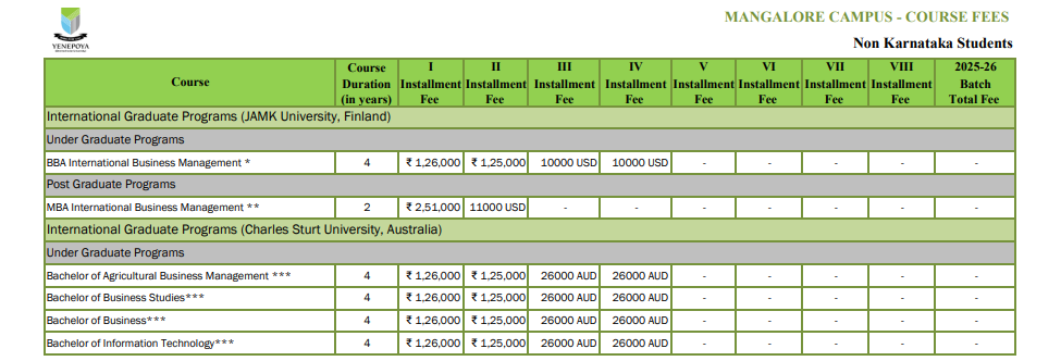 Yenepoya University Mangalore BBA International Business fees 2025 is ₹ 19.88 Lakhs for the entire course duration.