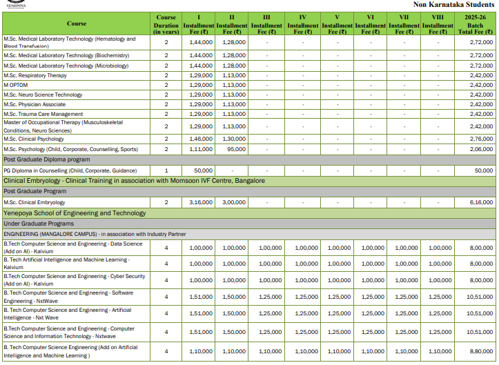 | Yenepoya University Mangalore | ₹ 2.98 Lakhs |