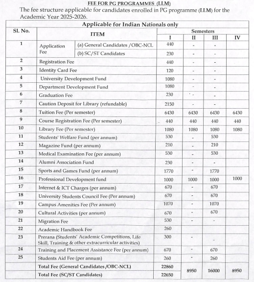 Earlier, L.L.M fees at CU Kerala was ₹ 36,660 (in 2021) for the entire course duration. This shows a fee increase of ₹ 20,100 over the year.