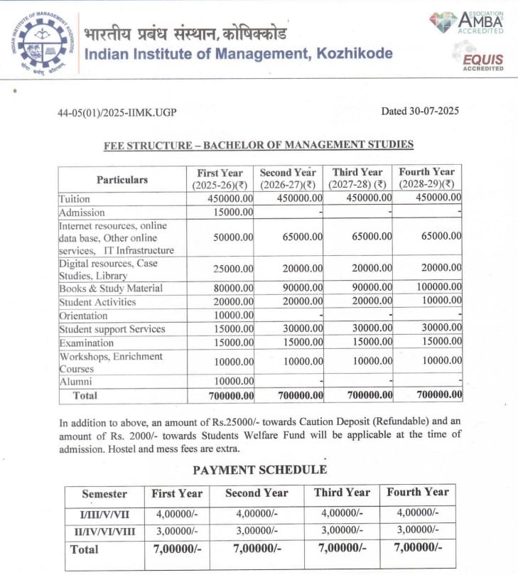 Compare IIM Kozhikode BMS Fees with Similar Colleges