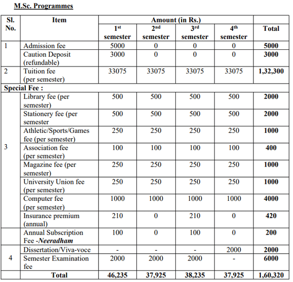 24 Mar, 2026 KUFOS has released M.Sc Coastal & Disaster Management Fee Structure 2026-27. The total academic fee is ₹ 1.78 Lakhs.