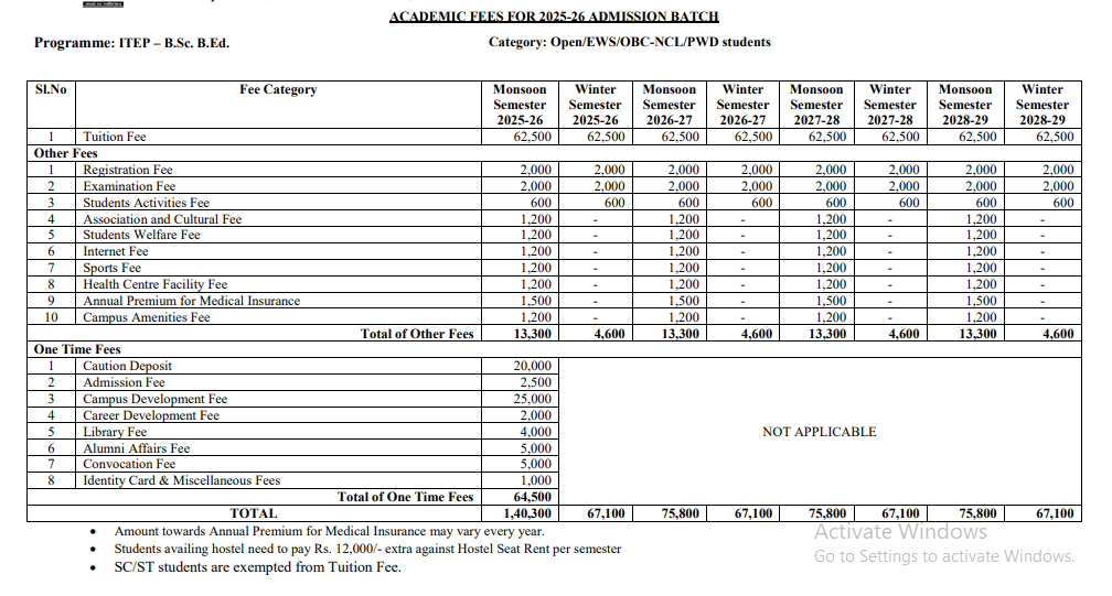 - The total fees for B.Sc + B.Ed is ₹ 6.36 Lakhs.