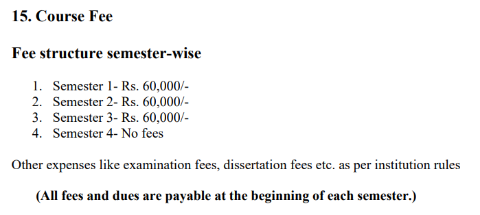 - Candidates need to pay ₹ 1.2 Lakhs in the first year.