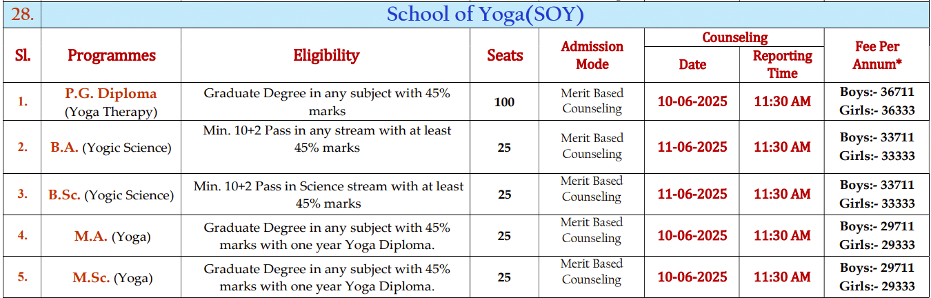 Devi Ahilya Vishwavidyalaya Indore M.Sc Yoga fees 2025 is ₹ 59,422 for the entire course duration.