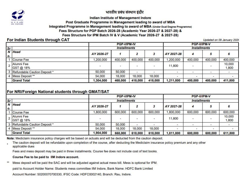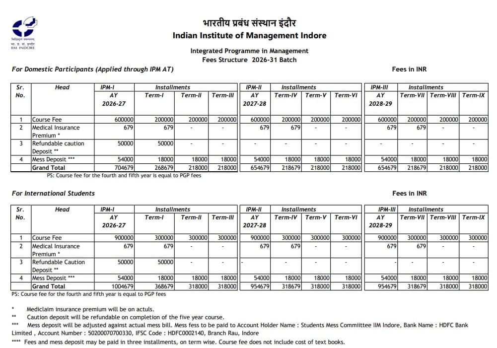 IIM Indore IPM fees 2025 is ₹ 38.3 Lakhs for the entire course duration.