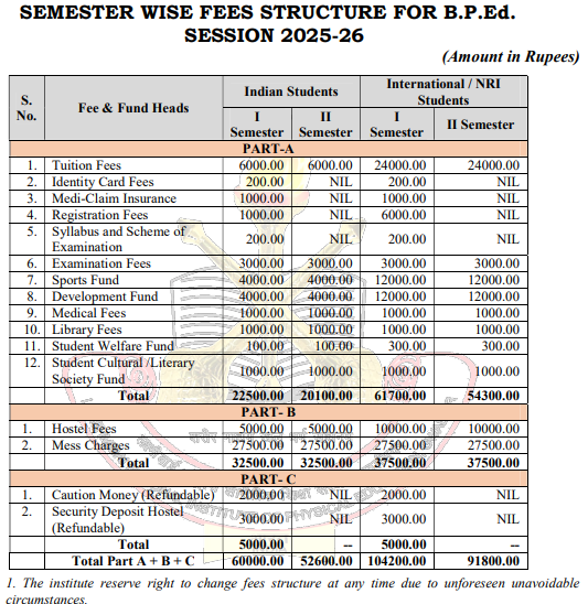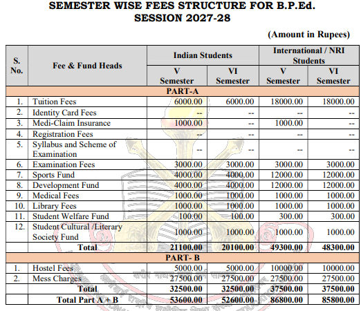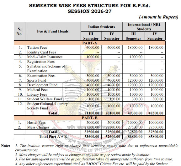 Graduates typically work in schools, fitness centers, or as coaches, earning an average monthly salary of Rs. 45,000 to Rs. 50,000. Internships are an essential part of the curriculum, offering hands-on experience. Scholarships based on merit, sports achievements, and minority status are available, with various state and national scholarships accessible through the National Scholarship Portal. The overall course cost is approximately Rs. 425,600, covering tuition, mess, hostel, and other facilities.