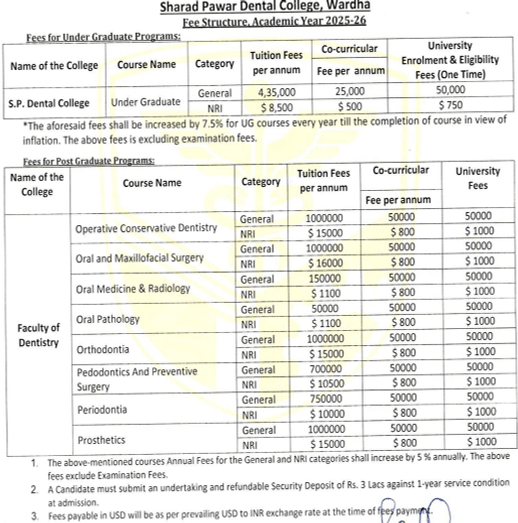 DMIMS MDS Oral Medicine And Radiology is offered as 3 Years Full Time program, with total intake of 3 seats. The minimum eligibility criteria for MDS is BDS + NEET. The total fees for DMIMS MDS Oral Medicine And Radiology in 2025 is ₹ 6.5 Lakhs for the complete course duration, which includes total tuition fees of ₹ 4.5 Lakhs. Earlier, the fees in 2023 - 2024 for MDS Oral Medicine And Radiology was ₹ 5 Lakhs.