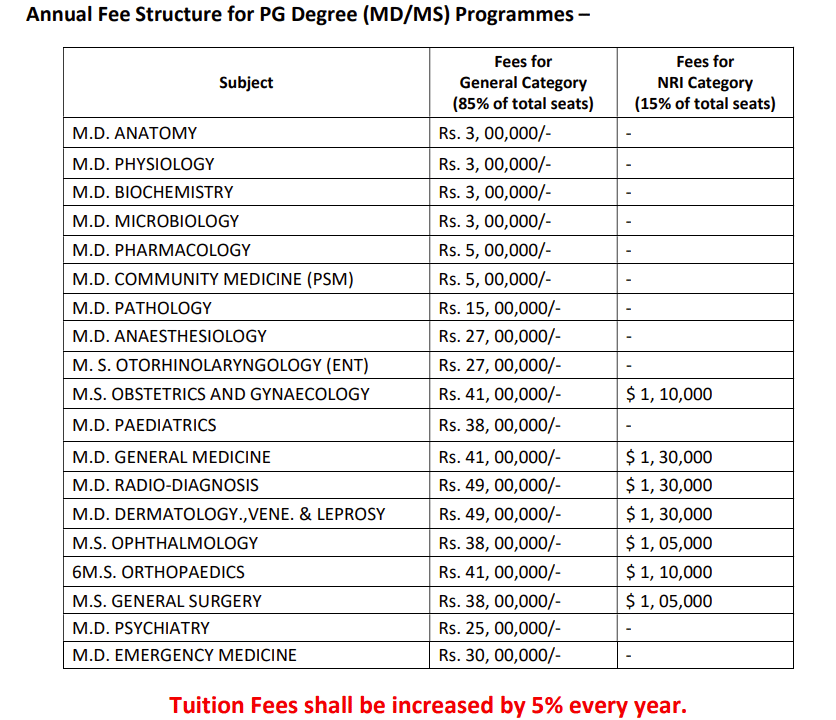 - Candidates need to pay ₹ 9.45 Lakhs in the first year.