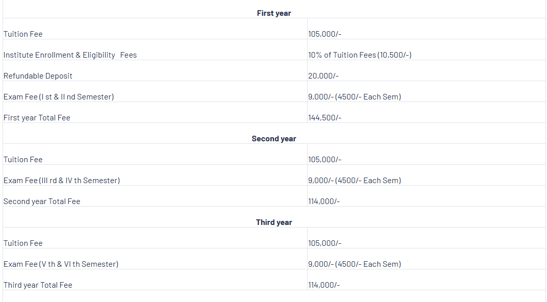 - Candidates need to pay ₹ 1.45 Lakhs in the first year.