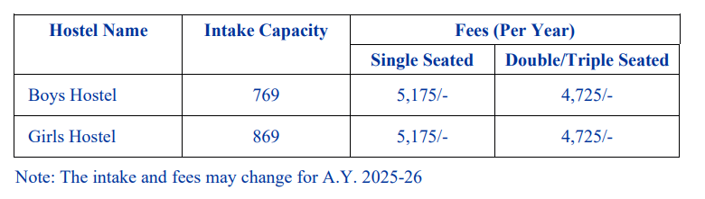 Security measures are better than some private accommodations, with the hostel located within a short distance from classrooms. The mess provides satisfactory food, including items like sabji, roti, dal, chaval, achar, and papad, with no quantity restrictions. Registration is simple and conducted online, making it accessible and convenient for students.