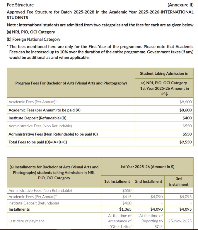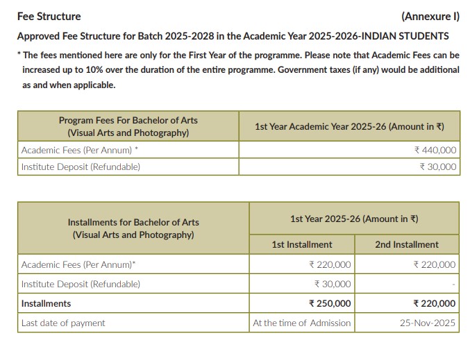 Earlier, BA Visual Arts and Photography fees at SIU Pune was ₹ 13.5 Lakhs (in 2024) for the entire course duration. This shows that the fee has remained unchanged since 2024.