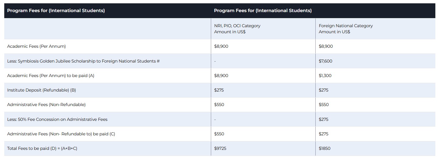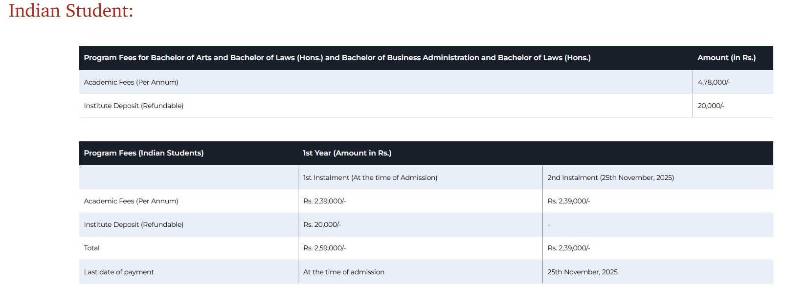 - This includes a total tuition fee of ₹ 23.9 Lakhs, Other Fees of ₹ 20,000.