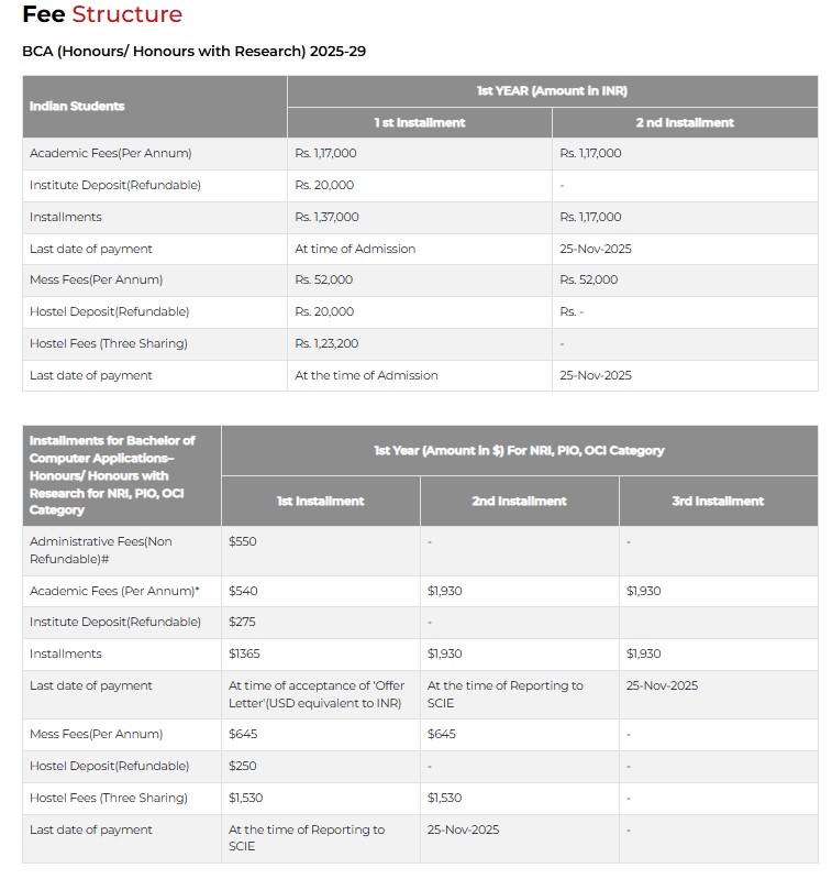 Earlier, BCA {Hons.} fees at SIU Pune was ₹ 8.72 Lakhs (in 2024) for the entire course duration. This shows a fee increase of ₹ 84,000 over the year.