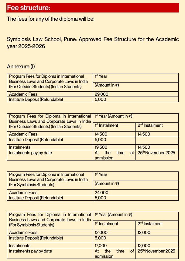 SIU Pune Diploma International Business Laws And Corporate Laws In India fees 2025 is ₹ 34,000 for the entire course duration.