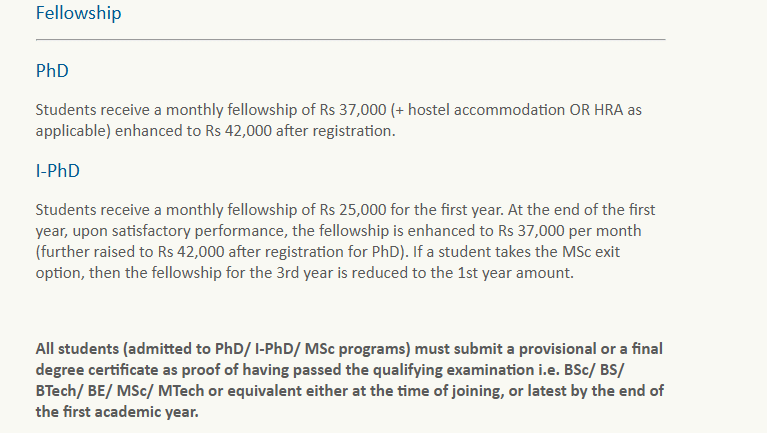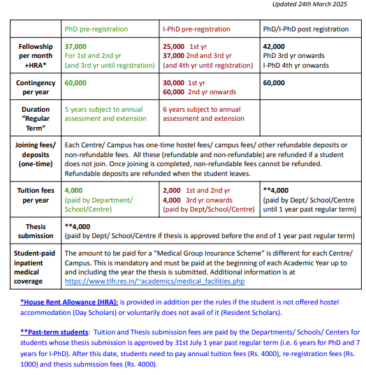 TIFR Ph.D Physics is offered as 5 Years Full Time program. The minimum eligibility criteria for Ph.D is Post Graduation with GATE/NET/JEST+PI. The total fees for TIFR Ph.D Physics in 2025 is ₹ 1.49 Lakhs for the complete course duration, which includes total tuition fees of ₹ 20,000. Earlier, the fees in 2020 - 2021 for Ph.D Physics was ₹ 17,000.