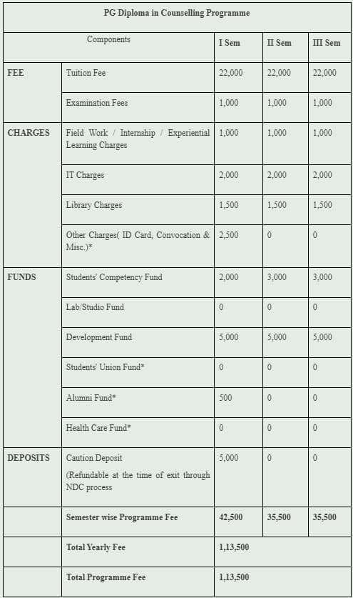 TISS Mumbai PG Diploma Social Work Counselling fees 2025 is ₹ 1.14 Lakhs for the entire course duration.