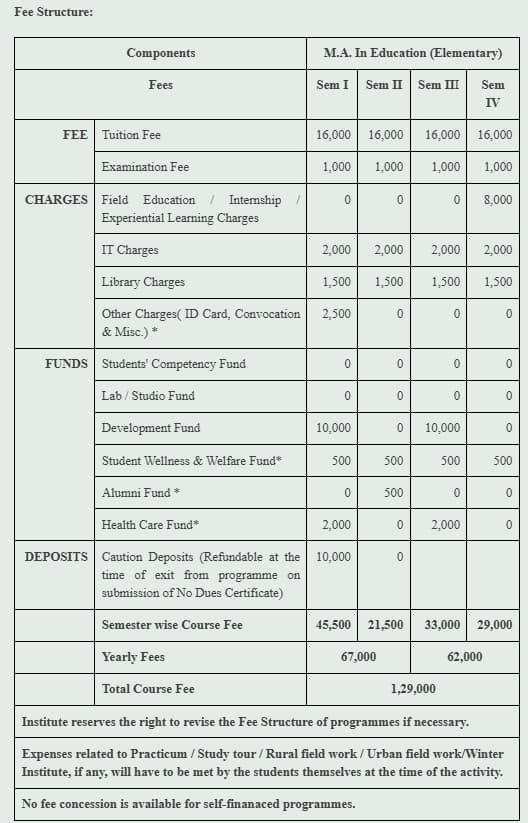 Earlier, MA Elementary Education fees at TISS Mumbai was ₹ 1.29 Lakhs (in 2024) for the entire course duration. This shows that the fee has remained unchanged since 2024.