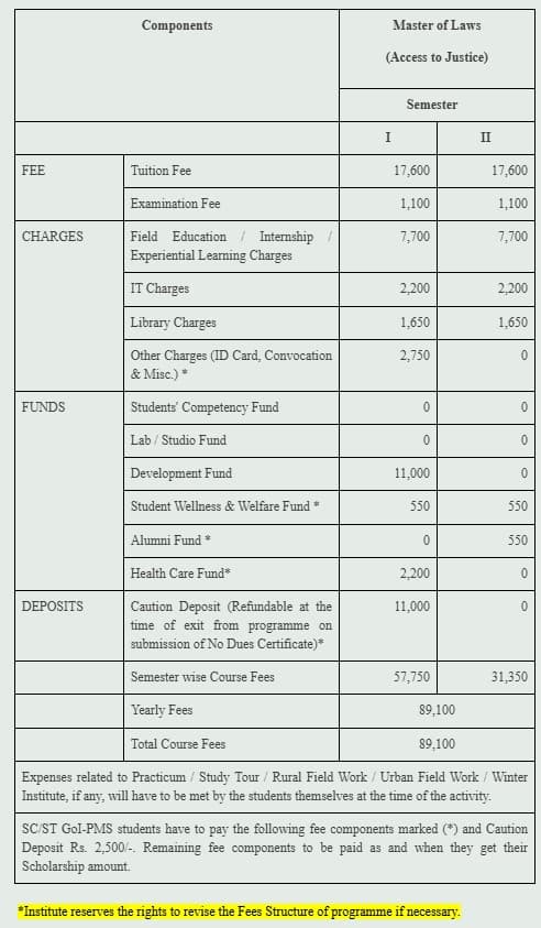 Earlier, L.L.M fees at TISS Mumbai was ₹ 81,000 (in 2024) for the entire course duration. This shows that the fee has remained unchanged since 2024.
