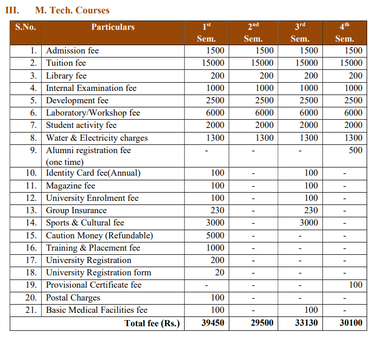 | Semester Wise Fees | ₹39450 | ₹29500 | ₹33130 | ₹30100 |