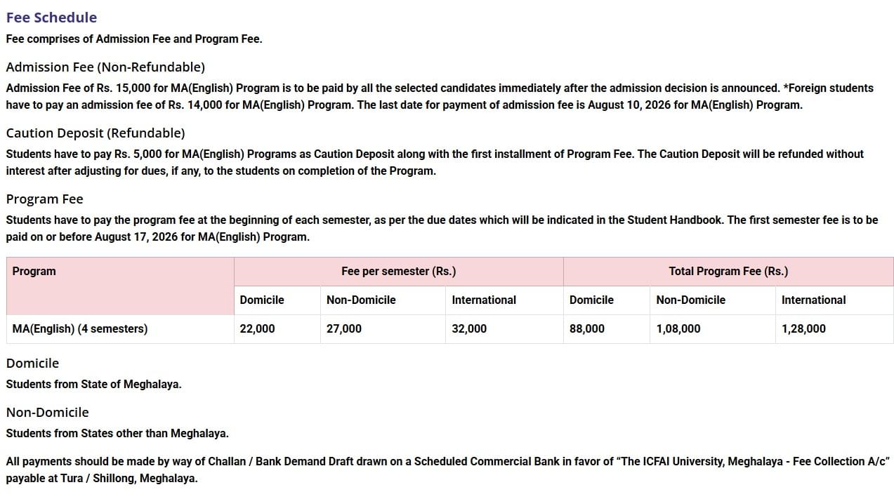 The semester fee is generally 20,000, but for M.A. English, it is 25,000, and for M.B.A., it is 35,000 due to additional expenses like industry visits. An admission fee of 50,000 is required, refundable upon graduation. Scholarships ranging from 29,000 to 30,000 are available, backed by the central government. Although the infrastructure needs improvement, the supportive faculty and staff are major strengths of the institution.