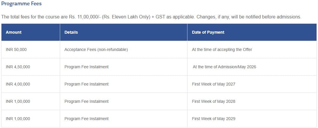 Earlier, Ph.D Working Professionals fees at IIM Shillong was ₹ 11 Lakhs (in 2024) for the entire course duration. This shows that the fee has remained unchanged since 2024.