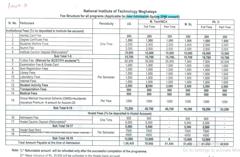 - NIT Meghalaya Hostel Fee is ₹ 24,000.