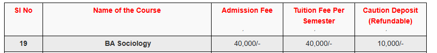 fee structure as per official website