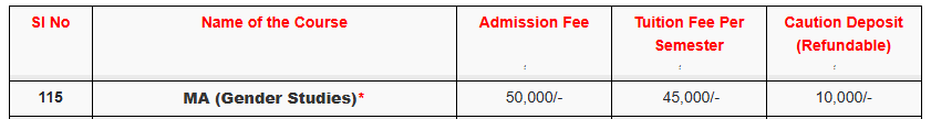FEE STRUCTURE AS PER OFFICIAL WEBSITE