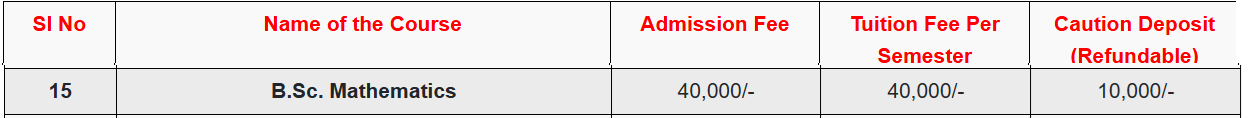 fee structure as per official website