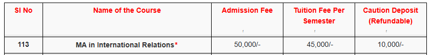 FEE STRUCTURE AS PER OFFICIAL WEBSITE