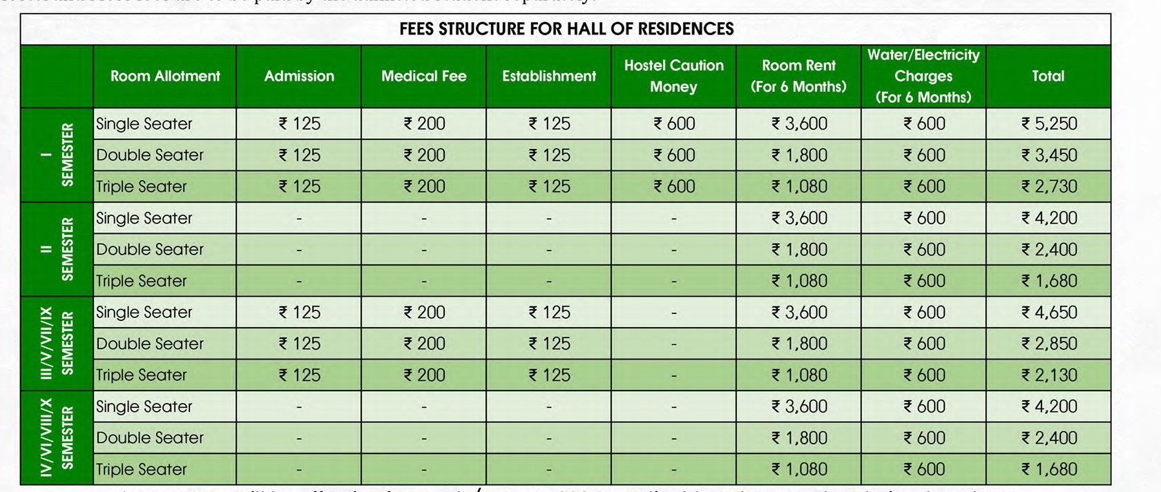 The college offers several hostels for both boys and girls, including specific hostels for engineering students. The annual hostel fees range from Rs 27,570 to Rs 31,770. Hostels provide 24-hour security, internet service, and a variety of meals, though meal quality varies. Juniors share triple rooms, while seniors and postgraduates have double or single rooms, respectively, each equipped with study tables and shelves.