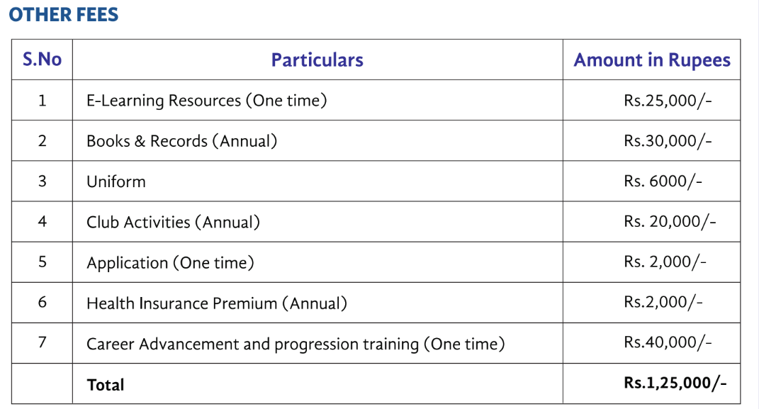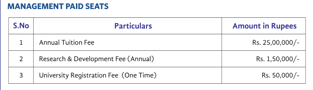 | Yearly Fees | ₹2825000 | ₹2702000 | ₹2702000 | ₹2702000 | ₹2702000 |