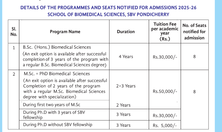 Sri Balaji Vidyapeeth University Pondicherry B.Sc {Hons.} Biomedical Sciences Fee has not been released yet. For reference you can check the previous year academic fees in the section below.
