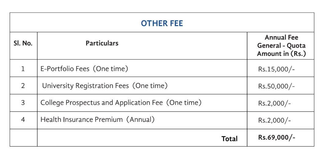 | Fees (2025 - 2026) | Year 1 (in INR) | Year 2 (in INR) | Year 3 (in INR) |