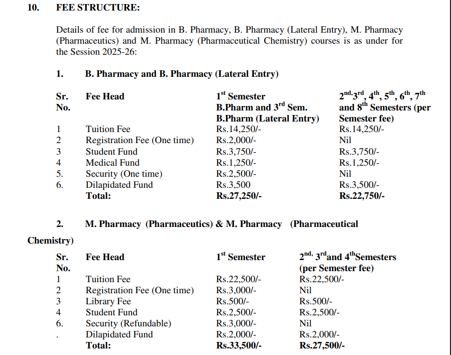 BFUHS M.Pharm Pharmaceutics fees in first year is ₹ 61,000. The detailed fees is mentioned below.