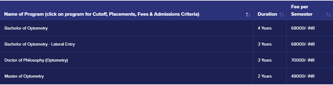 - The total fees for B.Optom is ₹ 5.49 Lakhs.