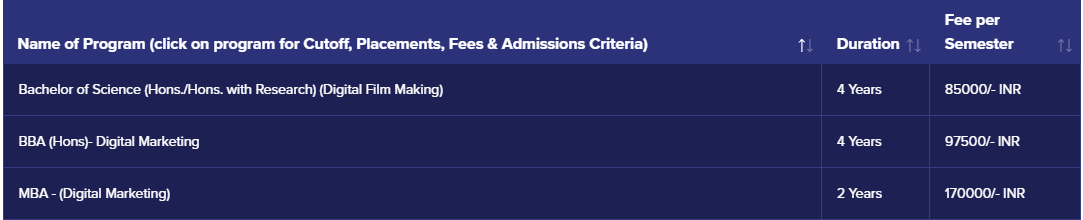 Note : The University also offers B.Sc {Hons} (Research) Digital Film Making Specialization.