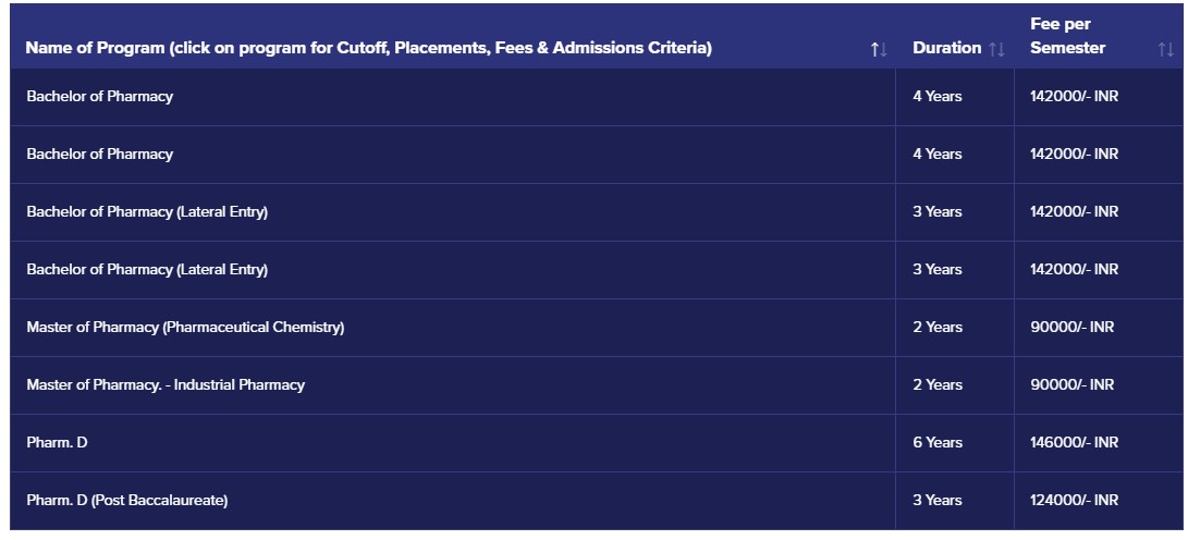 - The total fees for Pharm.D (PB) is ₹ 7.49 Lakhs.
