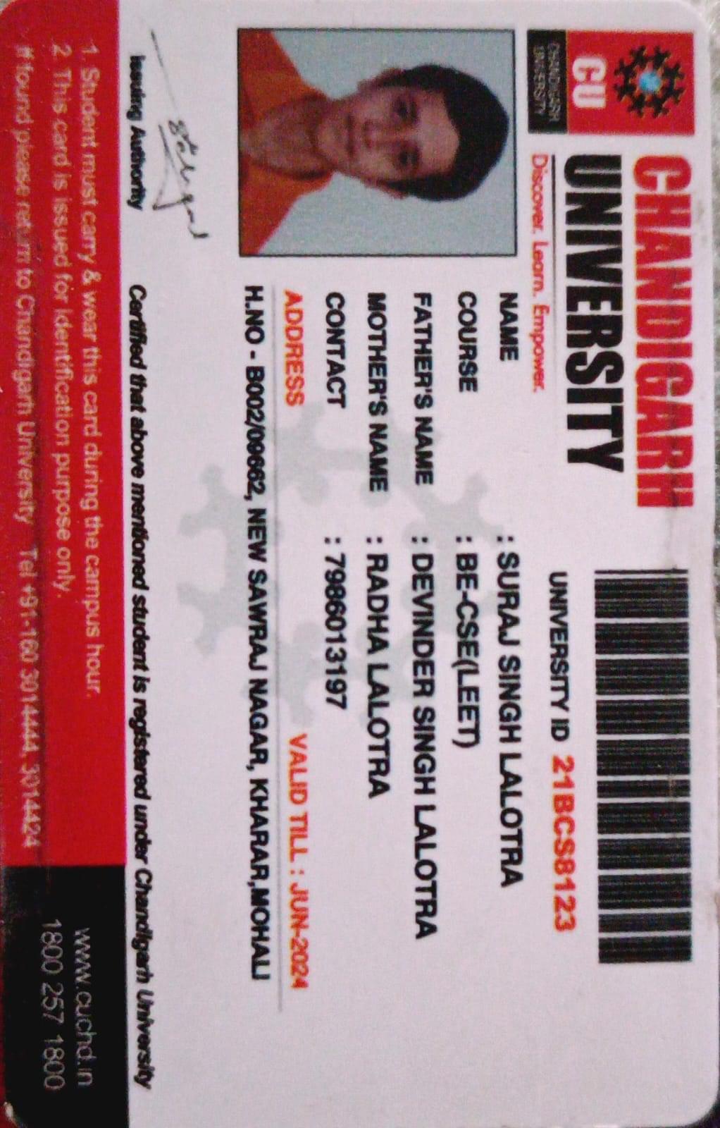 I choose BE - CSE ( Bachelor Of Engineering in Computer Science and Engineering ) as we all know how the world is going online . So demand of IT Engineer is more as compared to some other engineers . And Chandigarh University provides good placement as compared to some other Private University i.e. I choose this course . Faculty student relation is good and decent . Qualification of the faculty is up to mark. There has 2 mid term which has held after a month of regular classes and after that ther is End Term Examination. TO PASS the exam , There is non such issues regarding passing the exam .