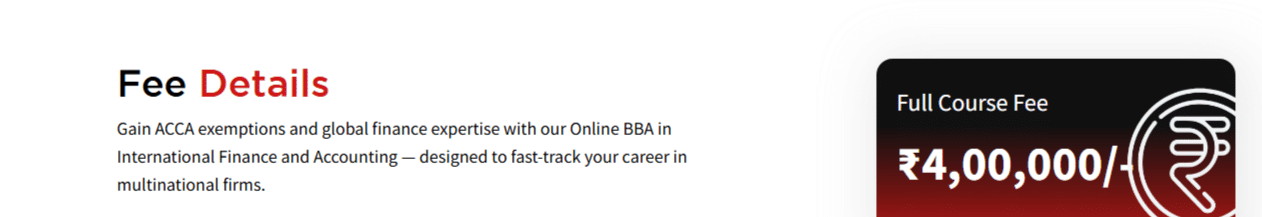 10 Mar, 2026 Chitkara University (Chandigarh) Fee Structure 2026 has been released for BBA International Finance programs. The total academic fee is ₹ 4 Lakhs. Read more.