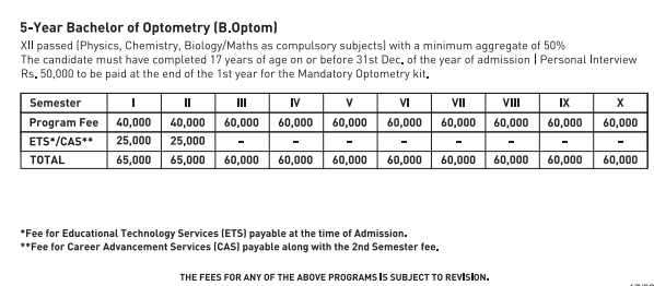 - Candidates need to pay ₹ 1.7 Lakhs in the first year.