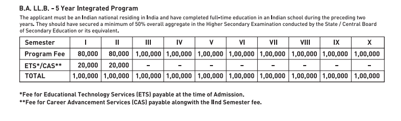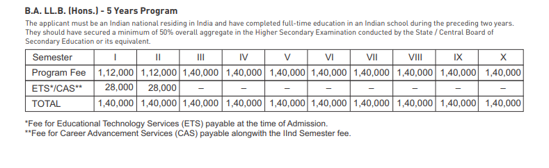 - The total fees for BA + L.L.B is ₹ 10 Lakhs.