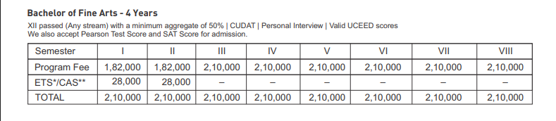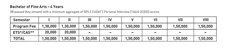 - The total fees for B.F.A is ₹ 12 Lakhs.