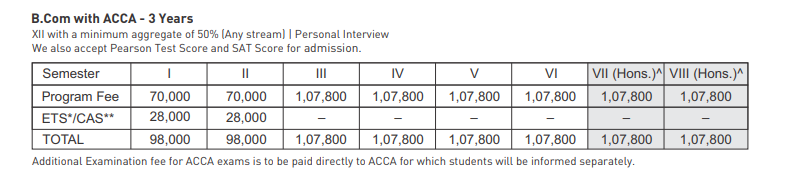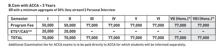 - The total fees for B.Com + ACCA is ₹ 4.48 Lakhs.