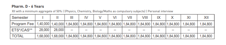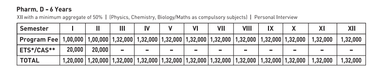 Pharma students benefit from strong ties with companies like Dr. Reddy's, Cipla, and Sun Pharma, improving placement and internship prospects. The university offers a 6-year Doctor of Pharmacy program, with an annual fee of 2,40,000 INR, payable biannually, and subject to yearly increases. Hostel accommodation is available, with 4-seater, air-conditioned rooms costing about 1,94,000 INR, which some students find costly. Additionally, a 300 INR annual fee is collected for pharmacy department celebrations.