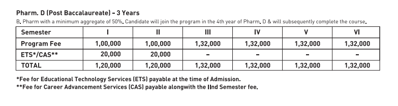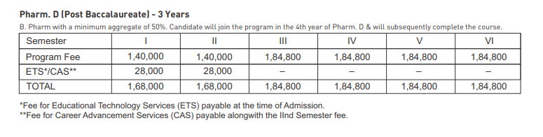 - The total fees for Pharm.D (PB) is ₹ 7.68 Lakhs.